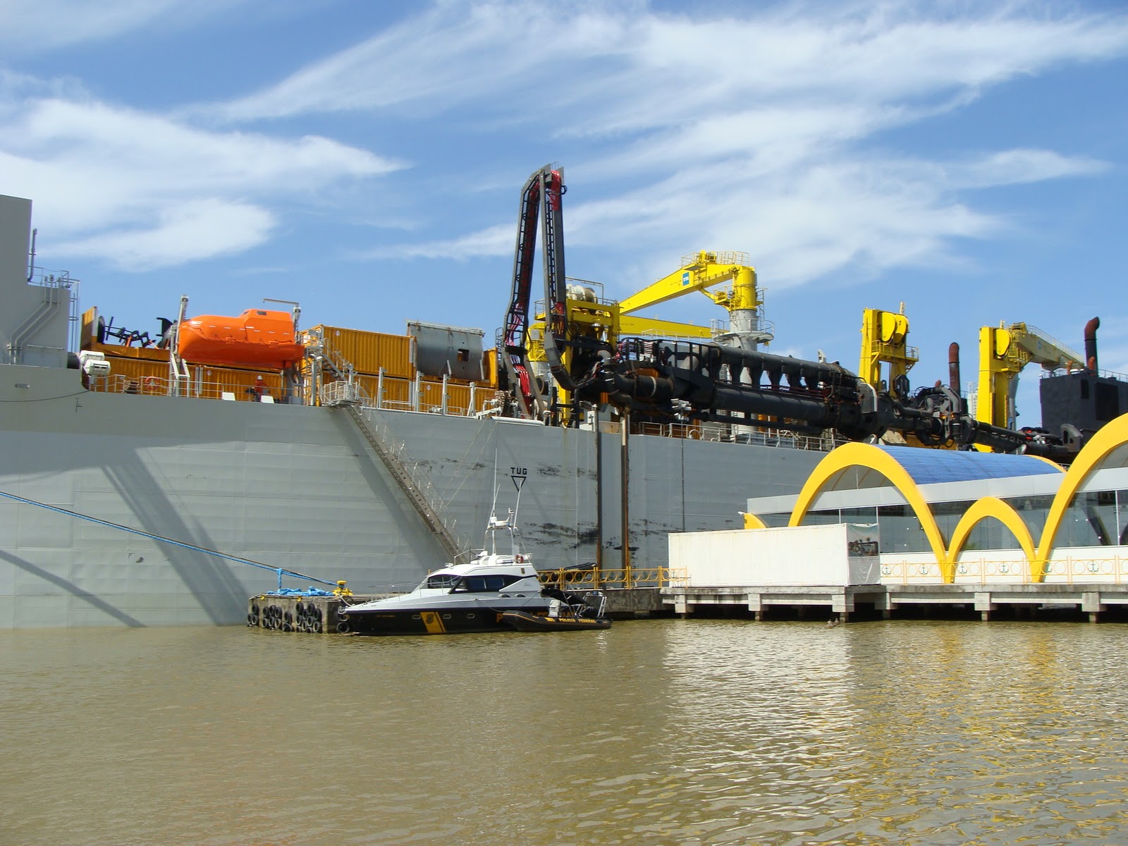 Os serviços serão feitos pela Draga Charles Darwin que já encontra-se em Itajaí esperando no Píer Turistico para iniciar os trabalhos. A draga possui 223 metros de comprimento, 40 metros de boca e capacidade de 30,5 mil metros cúbicos e será a maior e mais potente em operação no Brasil.